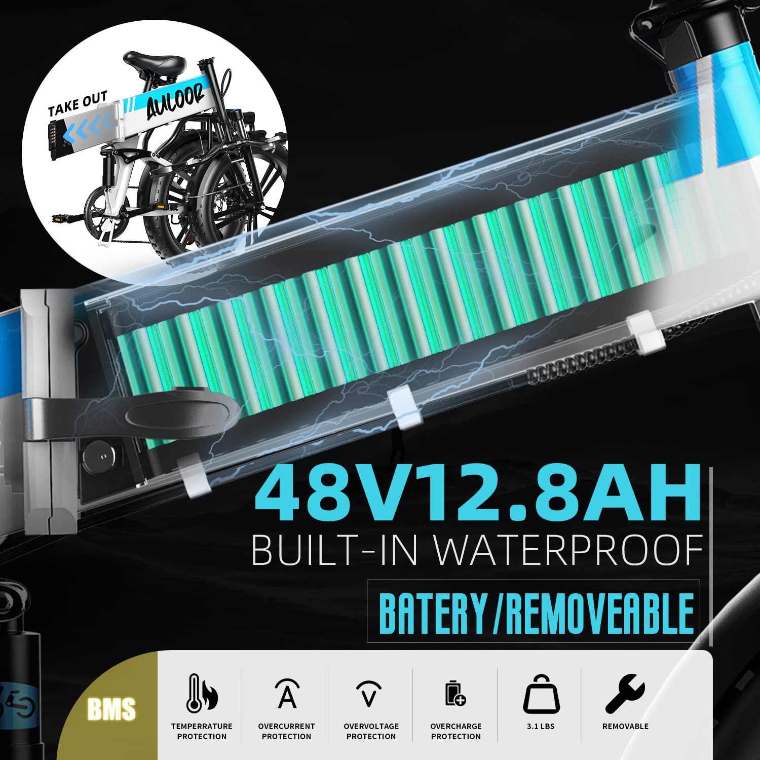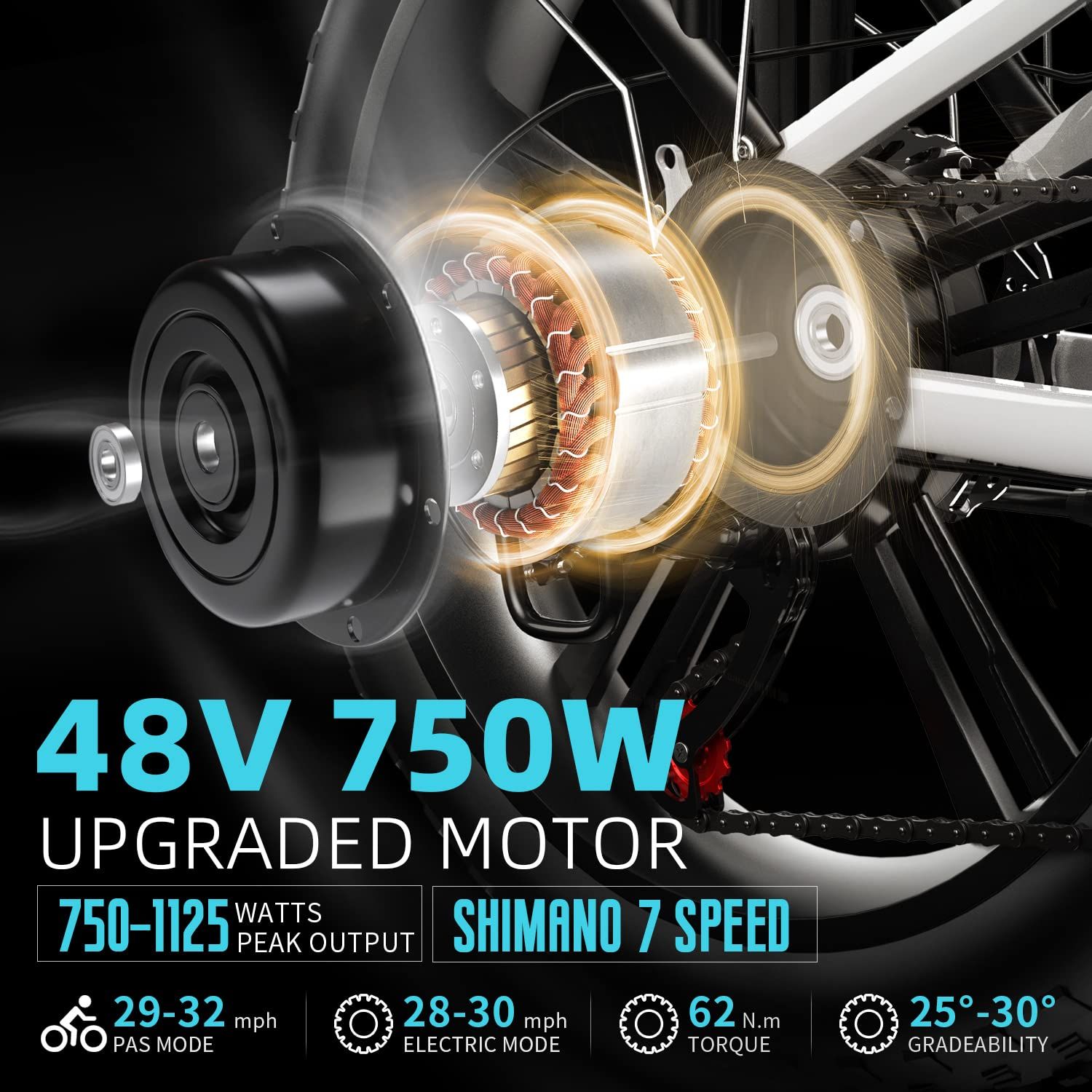 Auloor Electric Bike,750W Ebikes for Adults, 20" Fat Tire Electric Bike for Adults, 30MPH Folding Electric Bike, 48V 12.8Ah Battery,7-Speed Front Suspension Electric Bicycle