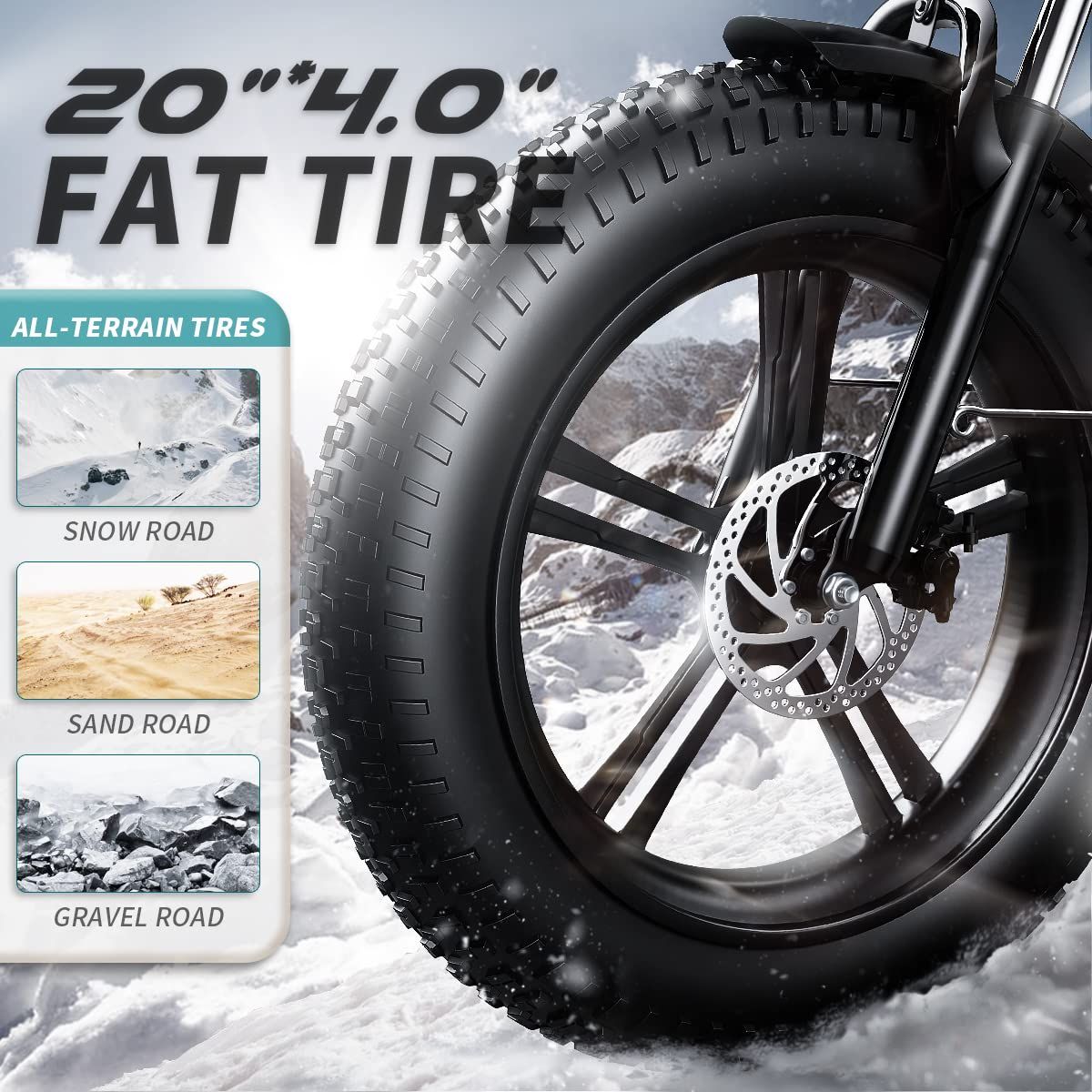 750W Electric Bike for Adults 48V 12.8Ah Detachable LG Battery, 30MPH Speed Folding Ebike, 20'' Fat Tires, Ideal for Snow, Beach & Mountain Trails Electric Bicycle